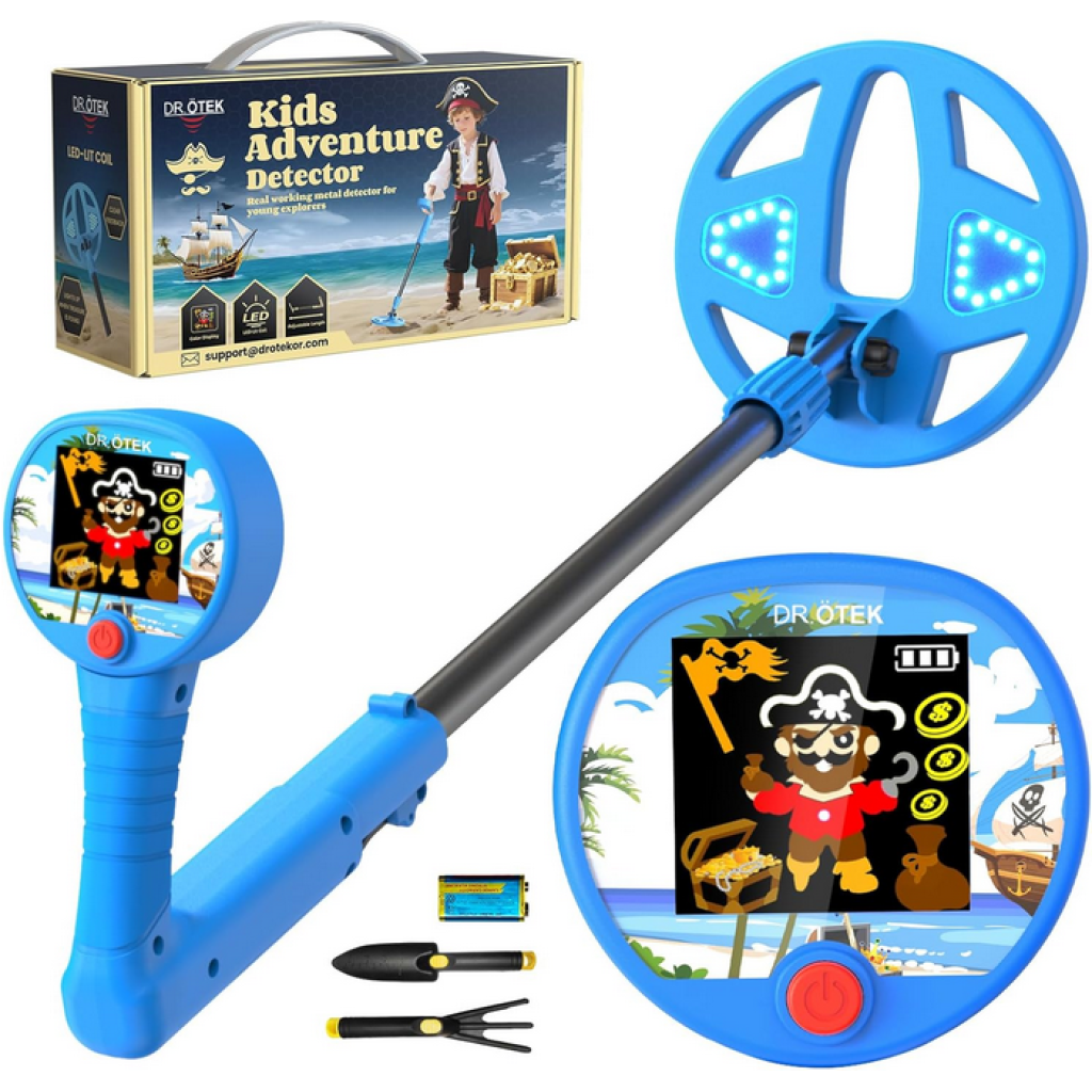 【Dynamic Color LCD Display】This kids metal detector features a vibrant color LCD screen that makes treasure hunting more exciting and easy to understand. Pirate-themed animated icons turn every find into an immersive adventure, keeping children engaged and inspired to explore outdoors.
